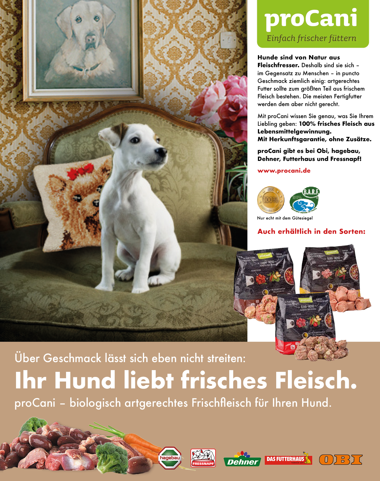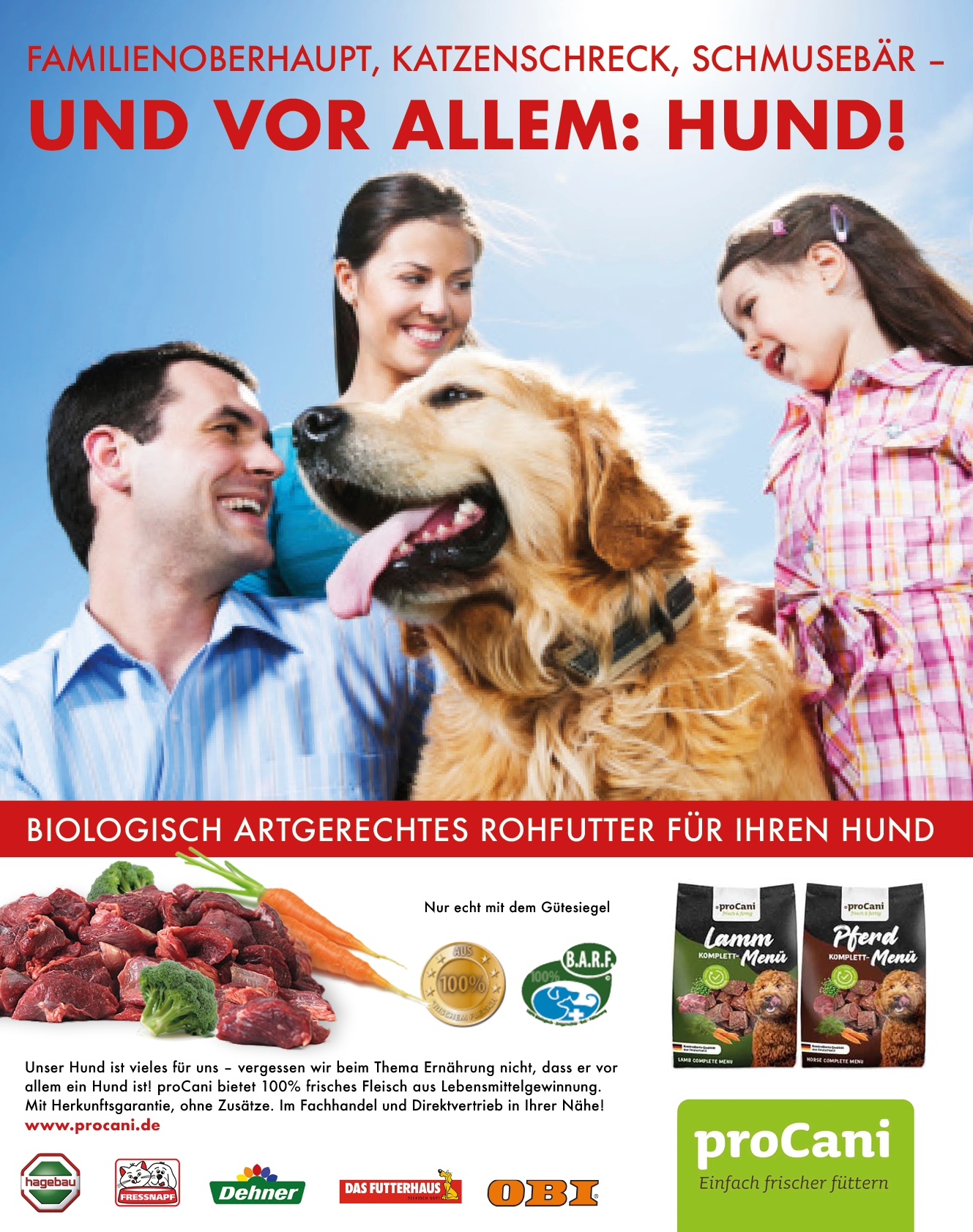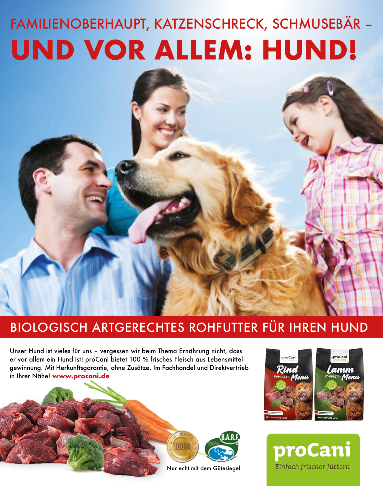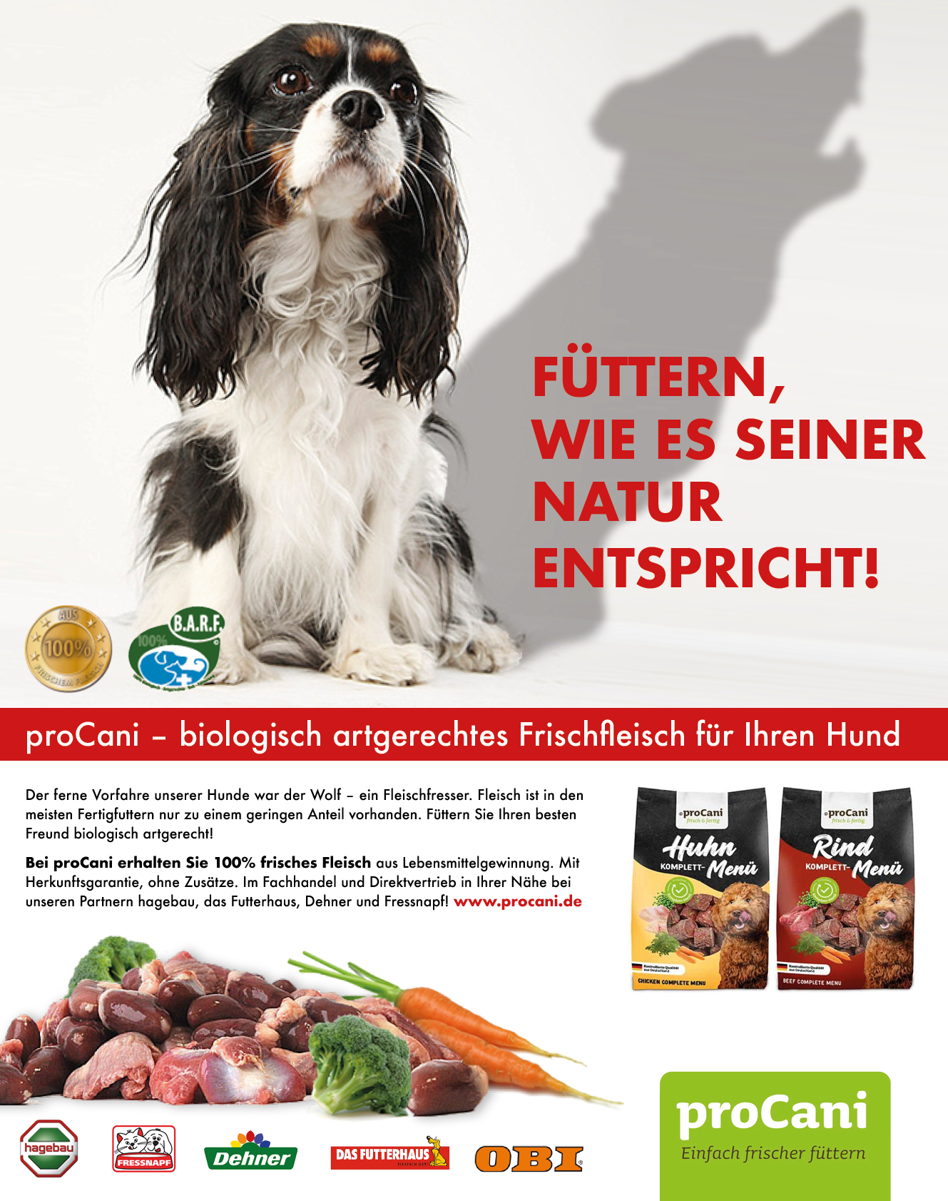 Entwicklung einer Produktkampagne für das hochwertige Tierfutter proCani mit dem Fokus auf OOH-Werbung und Anzeigen in Zeitschriften und Magazinen. Entwicklung verschiedener Tonalitäten, Look & Feel.