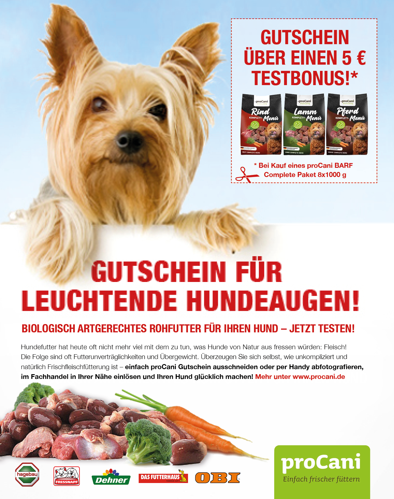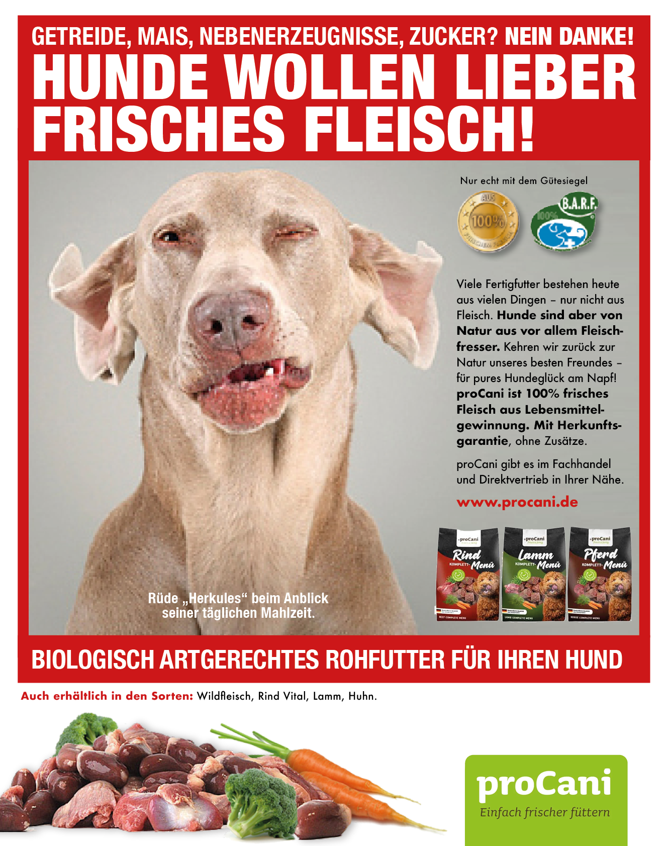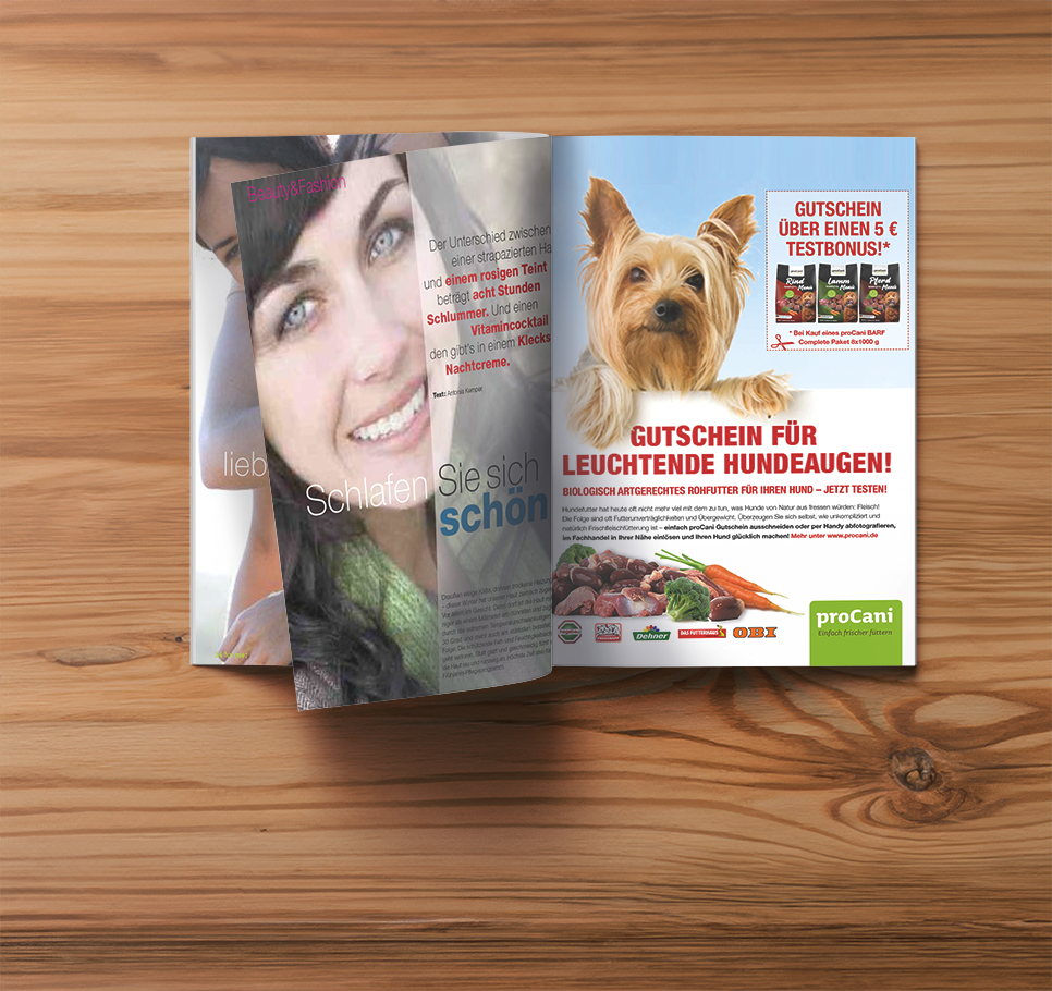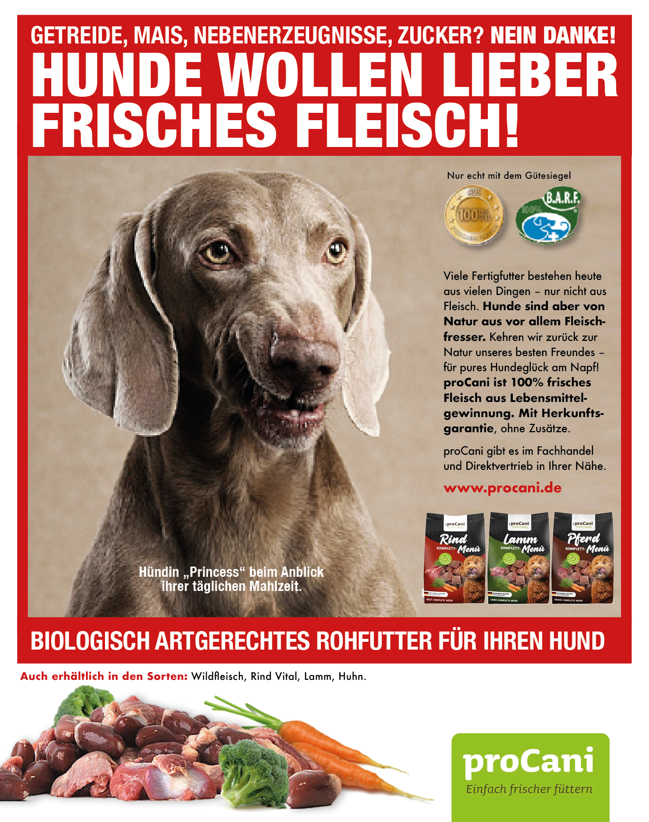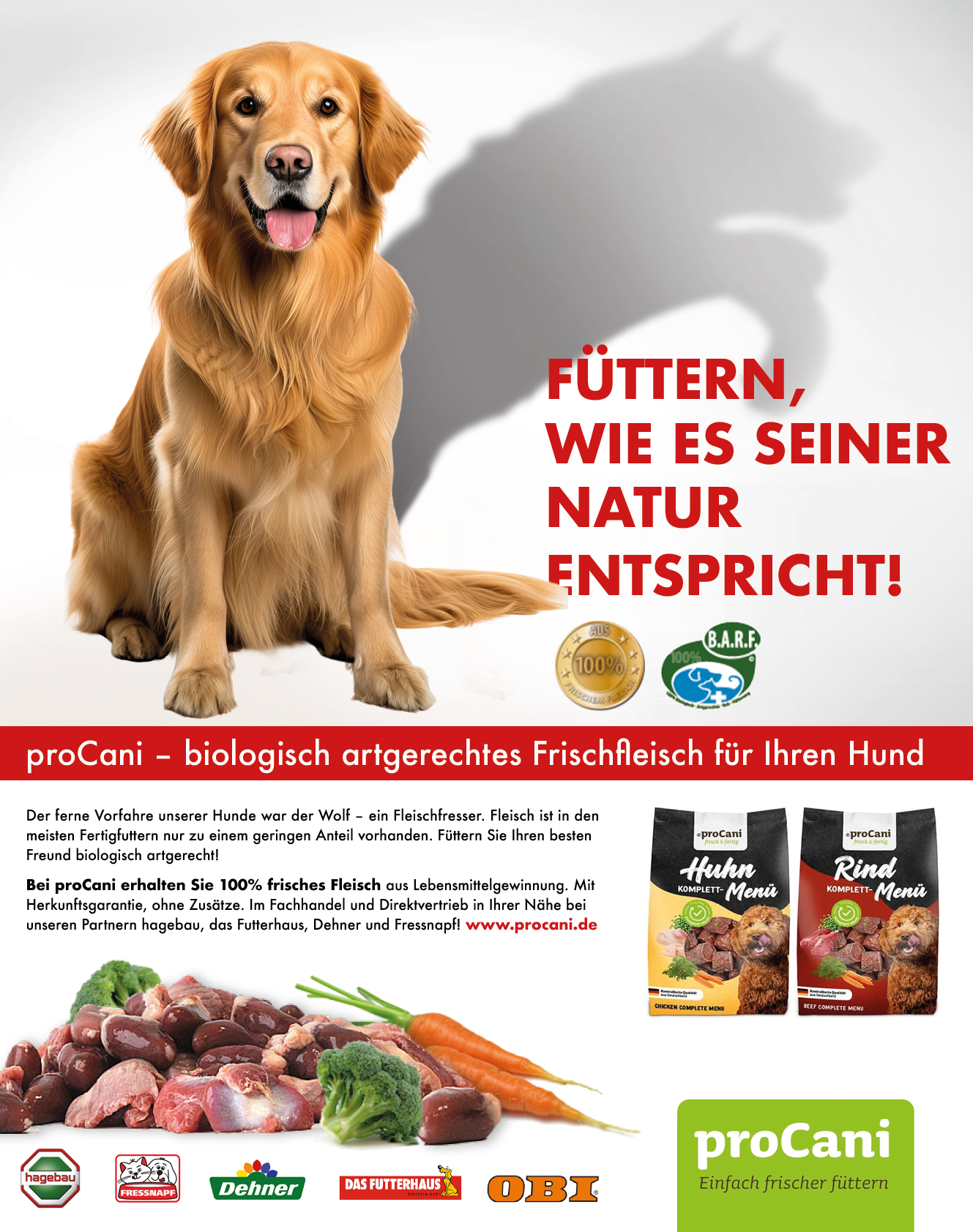 Entwicklung einer Produktkampagne für das hochwertige Tierfutter proCani mit dem Fokus auf OOH-Werbung und Anzeigen in Zeitschriften und Magazinen. Entwicklung verschiedener Tonalitäten, Look & Feel.